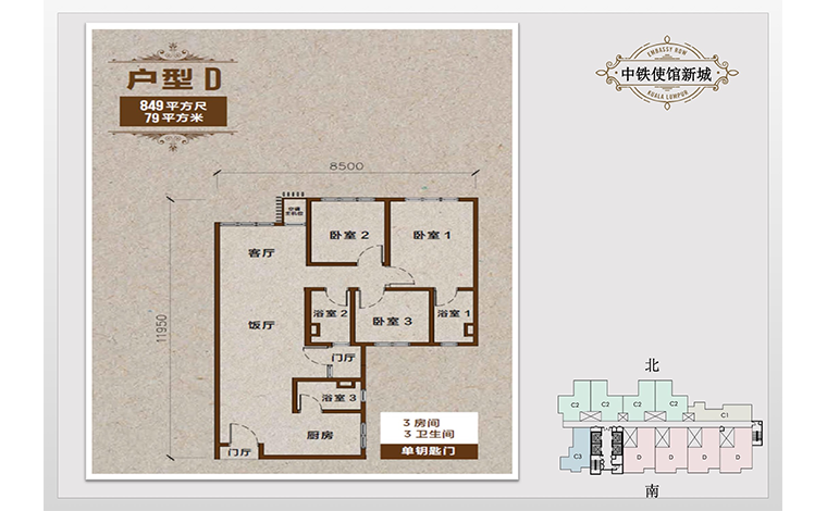 使館新城位于安邦路使館區(qū)內(nèi),開發(fā)商為中國中鐵和大馬蒂蒂亞集團(tuán)聯(lián)袂呈現(xiàn),緊鄰鷹閣醫(yī)院、吉隆坡國際學(xué)校、賽弗國際學(xué)校、大東方商城,距雙峰塔3公里,總價(jià)低,可分13期付款,兩房三房戶型合理,所在區(qū)域租房需求高,自住投資皆可。